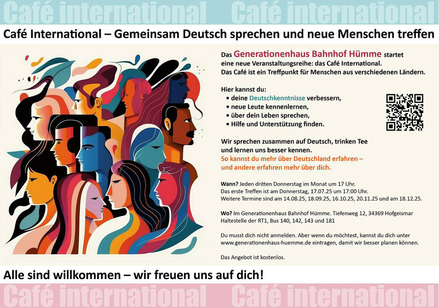 Das nächste Treffen ist am Donnerstag, den 16.10.25 ab 17:00 Uhr. Eine Anmeldung ist nicht erforderlich, für die bessere Planung aber willkommen unter www.generationenhaus-huemme.de.
