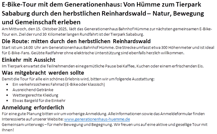 Anmeldung per E-Mail an botschaft@generationenhaus-huemme.de oder unter Telefon